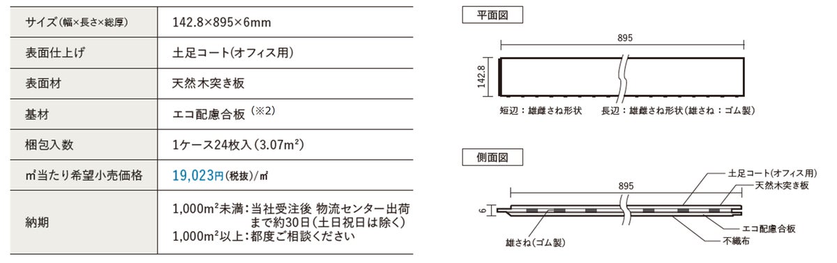 ※1 OAフロア周辺のコンクリートスラブ下地および捨て貼り合板下地に施工する場合には専用変成シリコーン接着剤 品番:KE9502S 760 ml/本 4,500円(税抜)が必要です。