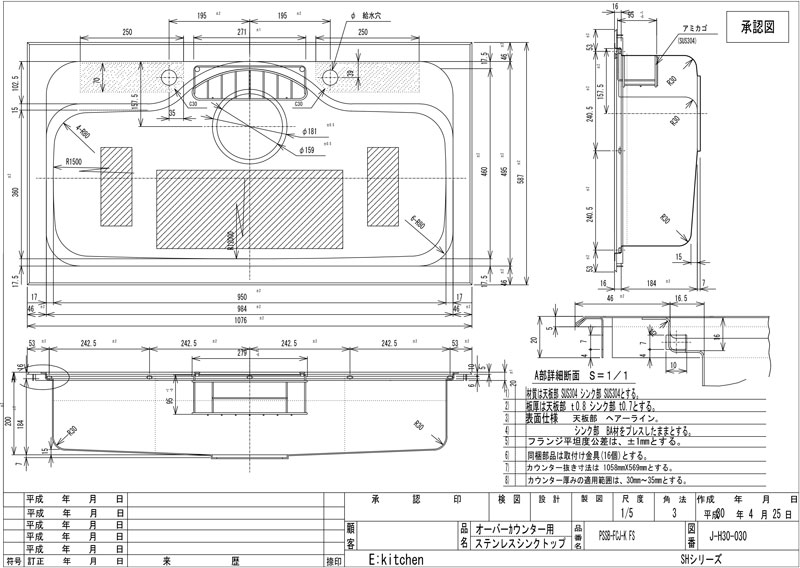 | ● 仕様 | ステンレス SUS304 t=0.8mm BA仕上 |