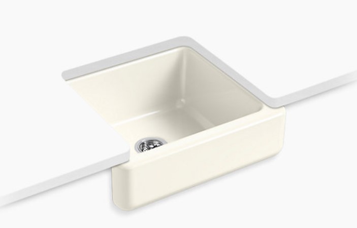 KOHLERキッチンシンクは排水呼び口径が115(116)Φですが鋳物ホ-ローなどシンク肉厚が厚く専用の排水部品が必要です。コーラー標準品ではストレーナーですのではSトラップやPトラップなど別途排水管をご利用ください。国内配管接続用のアダプタがございます。日本仕様として樹脂製でゴミカゴが付属した深型下引き排水部品やストレーナーに接続、V型のトラップ、ジャバラ管を取付けるK-10007セットもございます。