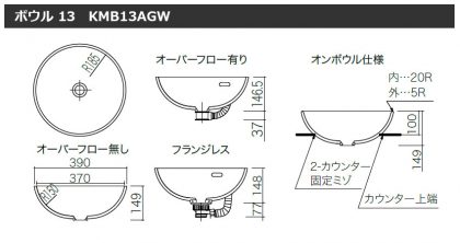 | 一般用オンボウル | KMB13AGW-3N(受注品) | ¥30,300 | 9ℓ |