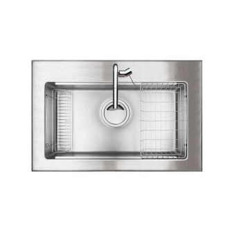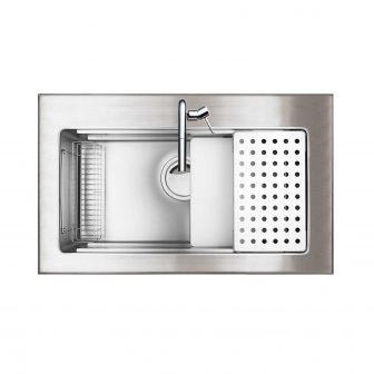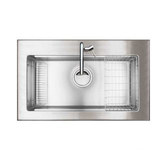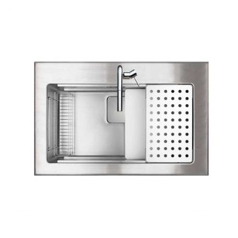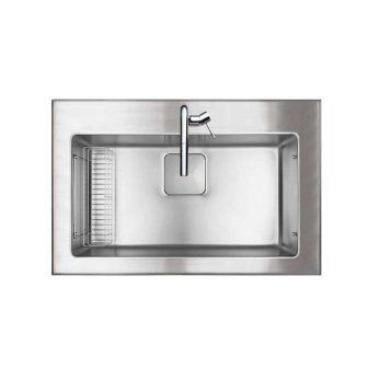 外寸W900xD580xH200|内寸W760xD410xH1951段レール付スクエアシンク SUS排水一体型