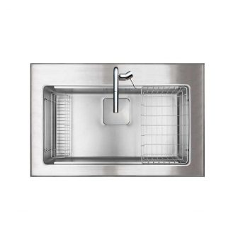 外寸W900xD580xH200|内寸W760xD410xH1952段レール付スクエアシンク SUS排水一体型